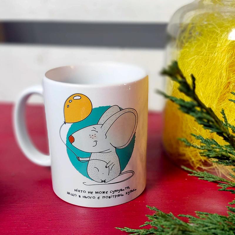 Кружка с принтом ніхто не може сумувати, якщо в нього є повітряна кулька