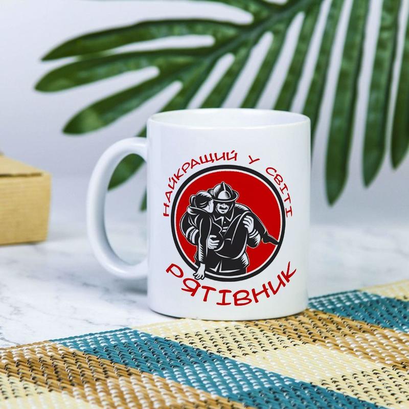 Белая чашка на подарок с надписью "лучший в мире спасатель" 330 мл