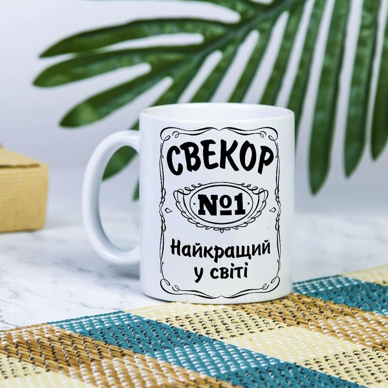 Біла чашка на подарунок з написом "свекр №1 найкращий у світі" 330 мл