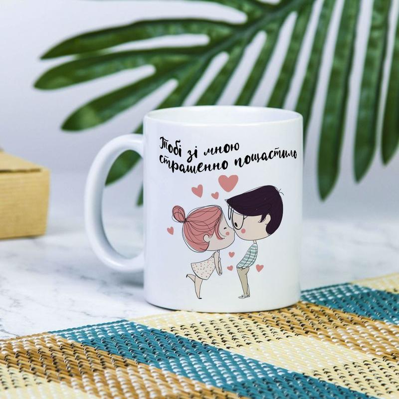 Белая чашка на подарок с надписью "тебе со мной ужасно повезло" 330 мл