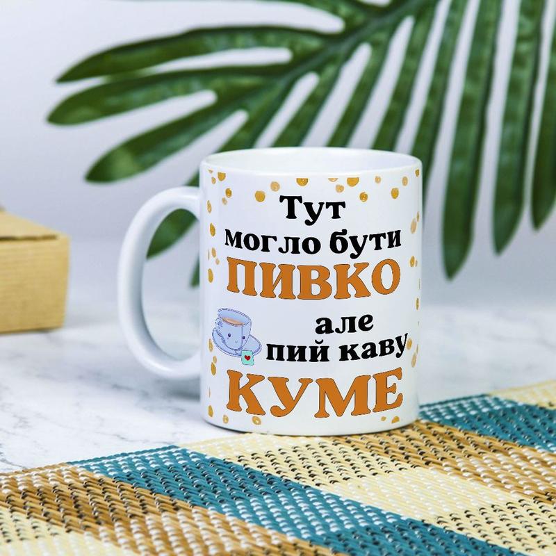 Белая чашка на подарок с надписью "тут могло быть пивко, но пей кофе кум" 330 мл