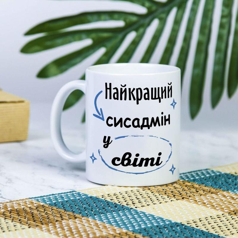 Белая чашка на подарок с надписью "лучший сисадмин в мире" 330 мл
