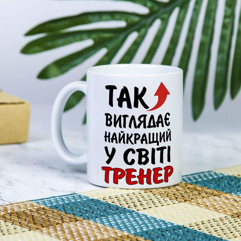 Белая чашка на подарок с надписью "так выглядит лучший тренер в мире" 330 мл
