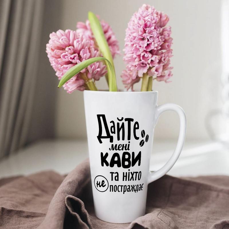 Белая чашка латте с дизайном "дайте мне кофе и никто не пострадает" 500 мл