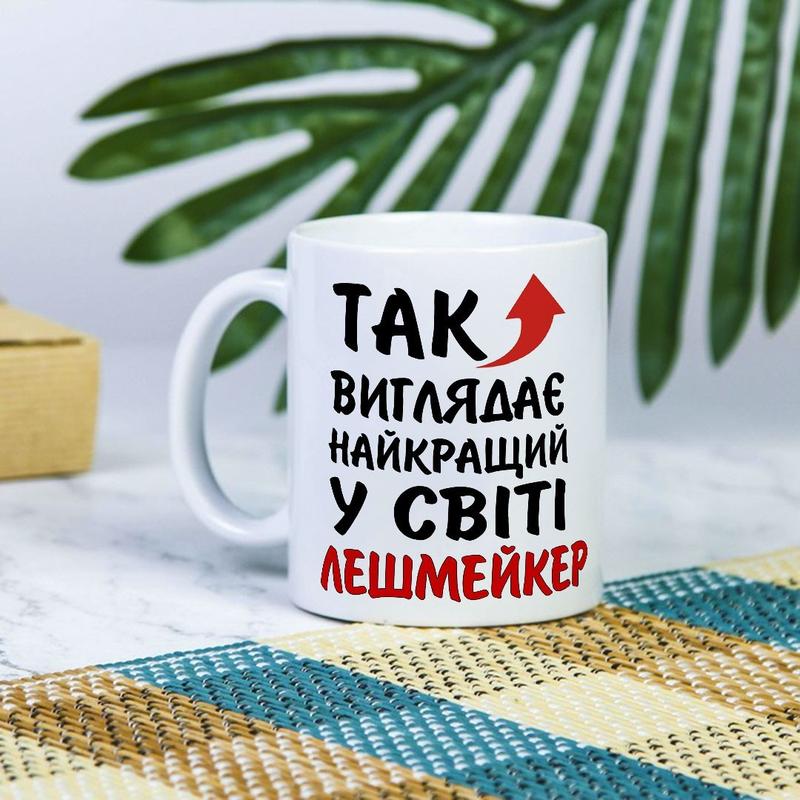 Белая чашка на подарок с надписью "так выглядит лучший в мире лешмейкер " 330 мл