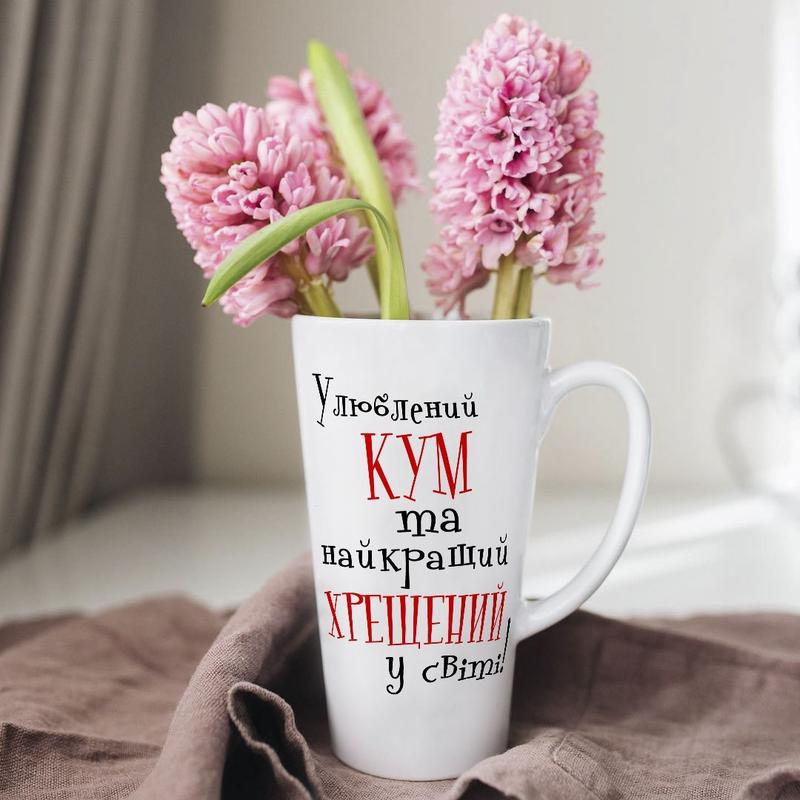 Белая чашка латте с дизайном "любимого кума и крестного в мире" 500 мл