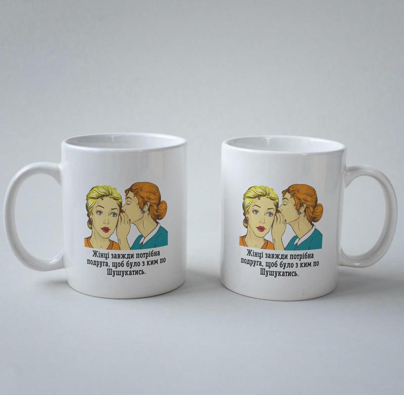 Кружка з принтом "жінці завжди потрібна подруга" 330 мл біла