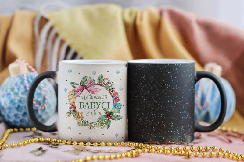 Новогодняя чашка хамелеон для бабушки