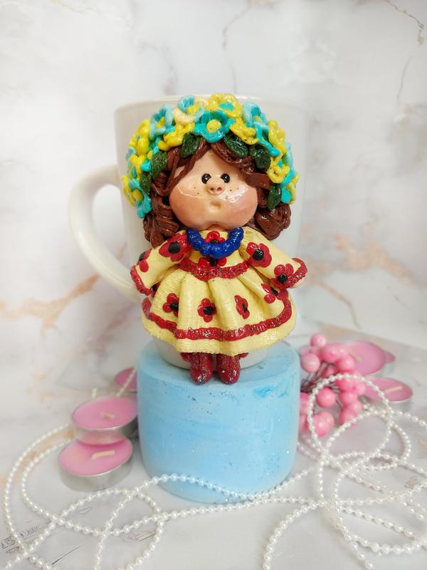 Чашка кружка с девушкой из полимерной глины