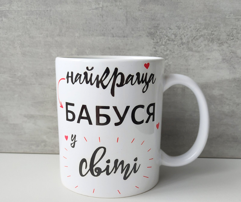 Горнятко з принтом для найкращої бабуся ✅Спосіб нанесення принту: сублімація; ✅Об'єм: 330 мл; ✅Призначення: для чаю, кави, води або інших напоїв. ✅ Топ якість