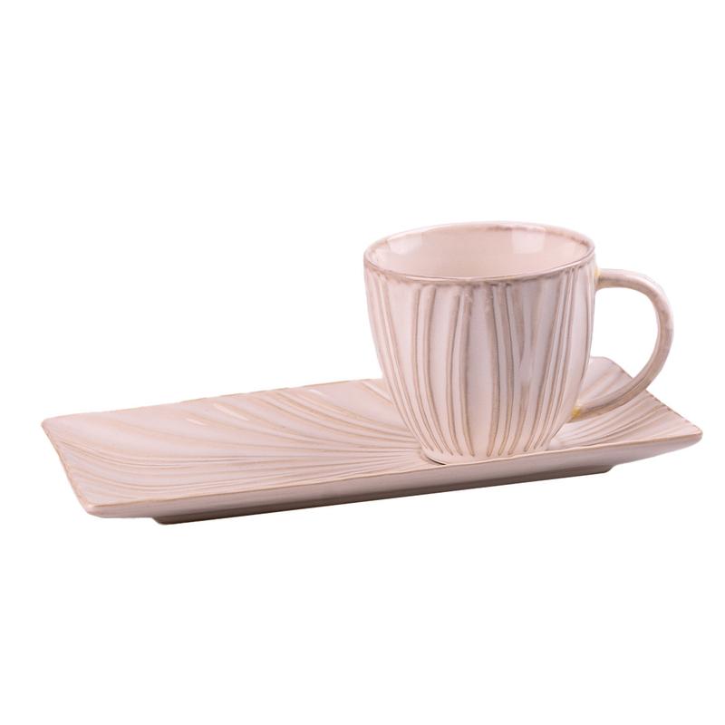 Чашка фарфоровая 350мл с блюдцем бежевый