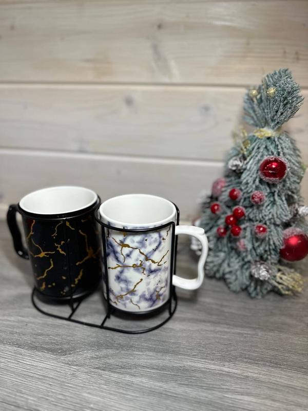 Набор кружек на металлической подставке 2 шт 340 мл В наборе 2 кружки белого и черного цвета по 340 мл Металлическая подставка черного цвета
