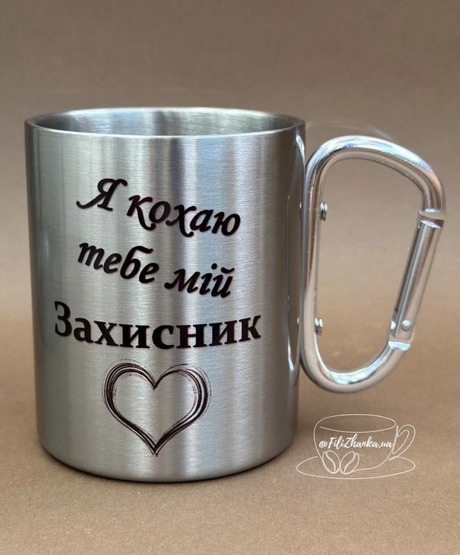 Металлическая чашка с ручкой-карабином⛓️Выполнена из нержавеющей стали, имеет двойные стальные стенки, за счет чего дольше сохраняет тепло🔥 💸Цена: 380 грн (стандартная упаковка) 💸Цена: 405 грн (подарочная упаковка🎁) Дизайн сложим любой (эмблема бригады, позывная, надпись, фото - стоимость будет такая же) Открытка Новой Поштой/Укр-бытой Есть оплата на счет ФОП, наложка по предоплате или Безопасная Оплата на Шкаф.Юа