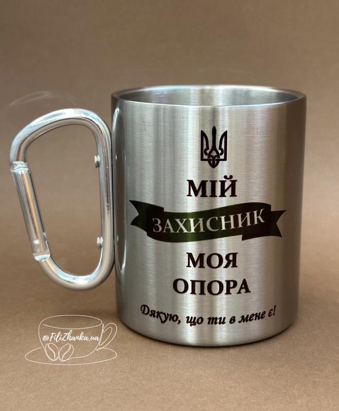 Металлическая чашка с карабином, чашка для военного, защитника, моя опора