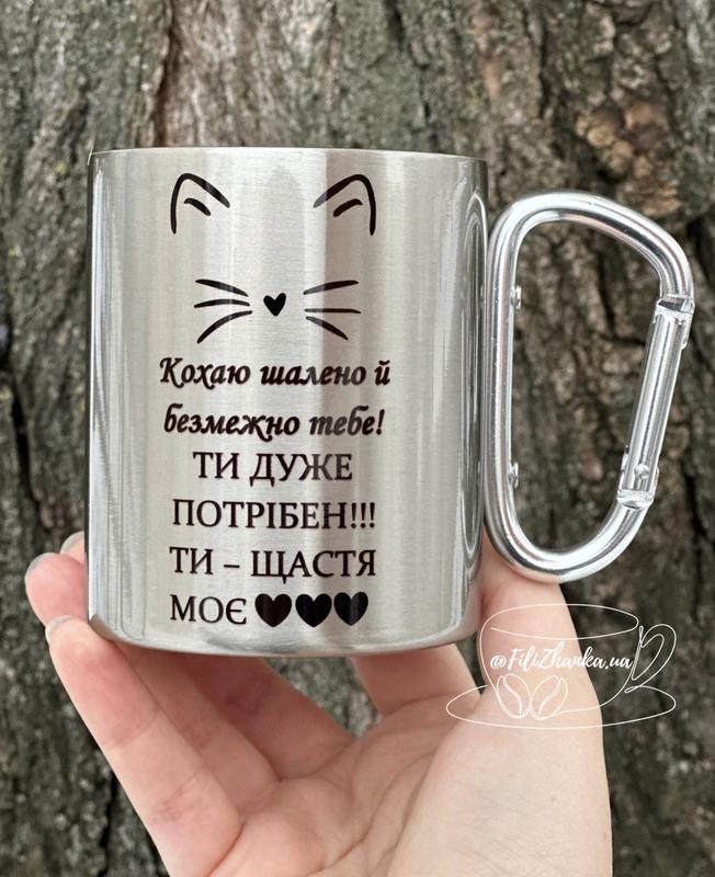 Металлическая чашка с ручкой-карабином⛓️Выполнена из нержавеющей стали, имеет двойные стальные стенки, за счет чего дольше сохраняет тепло🔥 💸Цена: 380 грн (стандартная упаковка) 💸Цена: 405 грн (подарочная упаковка🎁) Дизайн сложим любой (эмблема бригады, позывная, надпись, фото - стоимость будет такая же) Открытка Новой Поштой/Укр-бытой Есть оплата на счет ФОП, наложка по предоплате или Безопасная Оплата на Шкаф.Юа