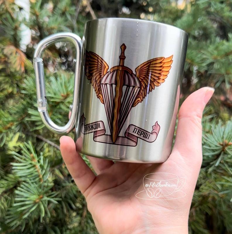 Металлическая чашка с ручкой-карабином⛓️Выполнена из нержавеющей стали, имеет двойные стальные стенки, за счет чего дольше сохраняет тепло🔥 💸Цена: 380 грн (стандартная упаковка) 💸Цена: 405 грн (подарочная упаковка🎁) Дизайн сложим любой (эмблема бригады, позывная, надпись, фото - стоимость будет такая же) Открытка Новой Поштой/Укр-бытой Есть оплата на счет ФОП, наложка по предоплате или Безопасная Оплата на Шкаф.Юа