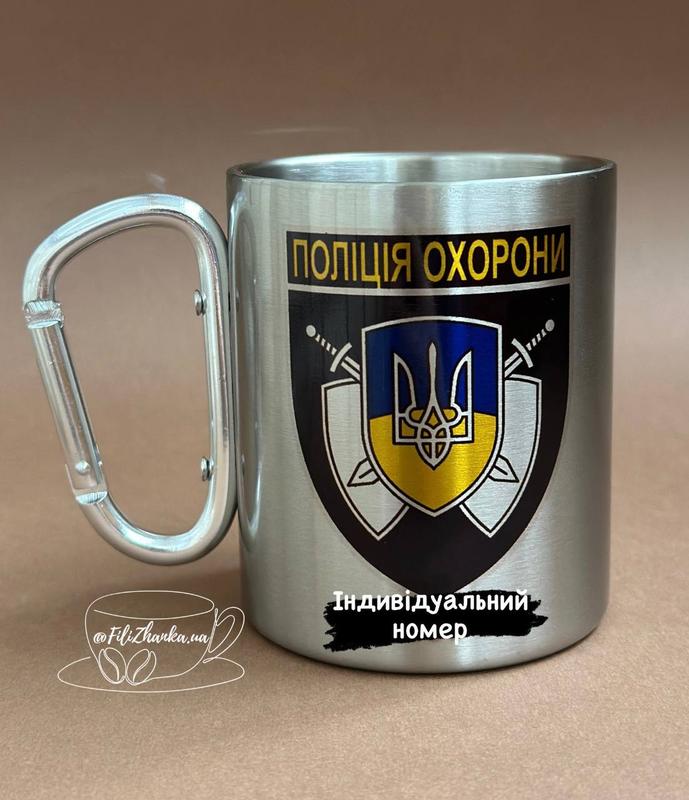 Металлическая чашка с ручкой-карабином⛓️Выполнена из нержавеющей стали, имеет двойные стальные стенки, за счет чего дольше сохраняет тепло🔥 💸Цена: 380 грн (стандартная упаковка) 💸Цена: 405 грн (подарочная упаковка🎁) Дизайн сложим любой (эмблема бригады, позывная, надпись, фото - стоимость будет такая же) Открытка Новой Поштой/Укр-бытой Есть оплата на счет ФОП, наложка по предоплате или Безопасная Оплата на Шкаф.Юа
