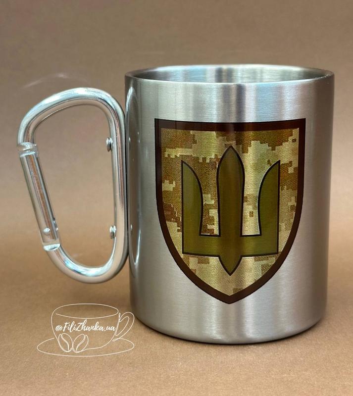 Металлическая чашка с ручкой-карабином⛓️Выполнена из нержавеющей стали, имеет двойные стальные стенки, за счет чего дольше сохраняет тепло🔥 💸Цена: 380 грн (стандартная упаковка) 💸Цена: 405 грн (подарочная упаковка🎁) Дизайн сложим любой (эмблема бригады, позывная, надпись, фото - стоимость будет такая же) Открытка Новой Поштой/Укр-бытой Есть оплата на счет ФОП, наложка по предоплате или Безопасная Оплата на Шкаф.Юа