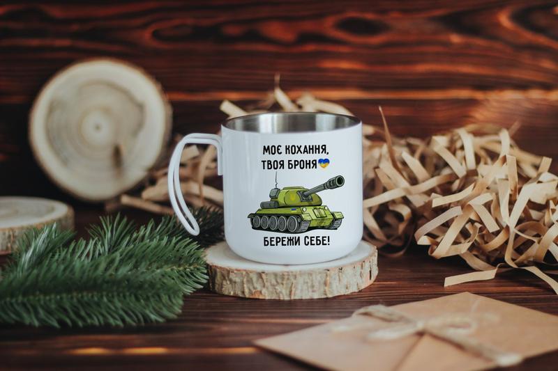 Кружка металлическая объемом 400 мл Уникальность кружки в том, что она имеет двойные стенки, а это значит, что напиток надолго останется горячим и при этом не будет обжигать руки.