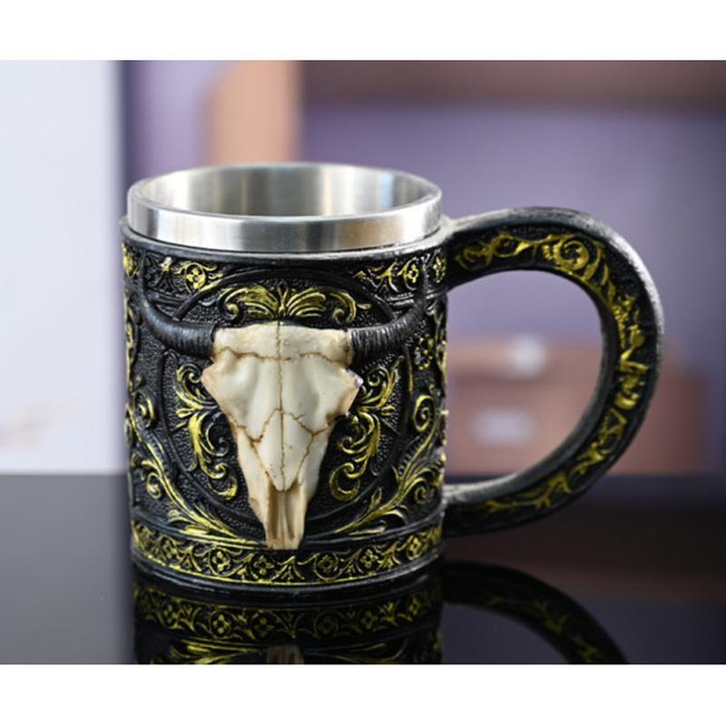 Чаша череп быка 400 мл из полистоуна , череп быка , чашка череп быка , пивная кружка, круж...