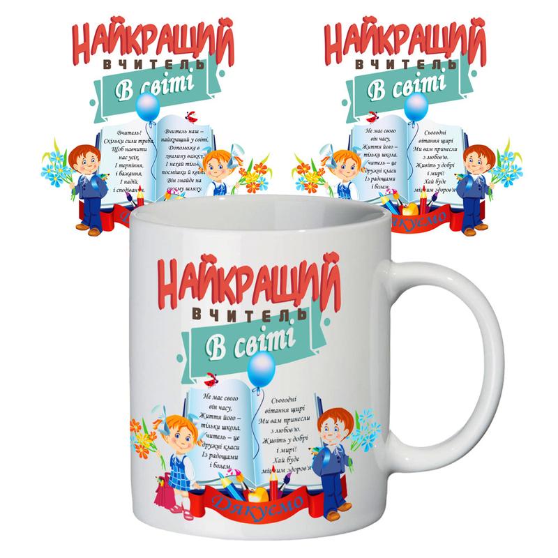 Чашка с принтом 65103 Найкращий вчитель в світі - оригинальная керамическая чашка, объемом в 350 мл, подходит как для горячих, так и холодных напитков. Красочное изображение с двумя первоклашками дополняет фраза Лучший учитель в мире на украинском языке. Стойкое полноцветное изображение нанесено методом горячей (высокотемпературной) деколью,в процессе термопереноса специальные краски впекаются в структуру керамики, благодаря чему изображение обретает стойкость к механическим воздействиям. По этому мы можем гарантировать Вам, что кружка с сублимационной печатью, будет радовать Вас каждое утро и прослужит длительное время. Не рекомендуется ставить чашку с принтом в микроволновку и мыть с моющими средствами, а также оставлять на длительное время под воздействеем прямых солнечных лучей. В этом случае изображение может выцвести.Купить чашку в качестве подарка учителю на День учителя, День знаний, Новый год, день рождения или 1 сентября. Наша компания предлагает широкий выбор оригинальных чашек и кружек для любого повода. Вы можете заказать печать на кружке оптом в нашем интернет магазине Карнавал Приколов.