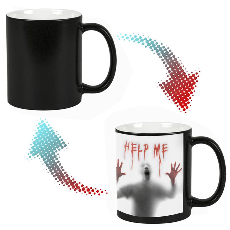 Чашка хамелеон 66001 Help me с виду обычная однотонная чашка, но если залить горячий напиток, как на ней появляется замысловатая картинка – кричащая Помогите. Объем керамической чашки 350 мл, благодаря чему, Вы можете, целиком и полностью насладится любимым напитком. Ее можно купить как оригинальный и символический подарок, ее можно подарить любимой девушке или парню в знак внимания. А с этой чашкой, точно будет обеспечено основное внимание. Широкий выбор чашек и кружек с оригинальным дизайном для любого повода Вы можете купить в интернет магазине Карнавал Приколов.
