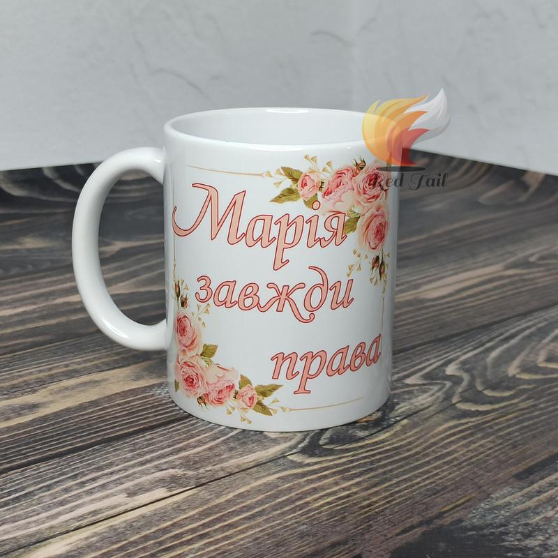Чашка іменна "марія завжди права" (ім'я обирається при замовлені) 330 мл