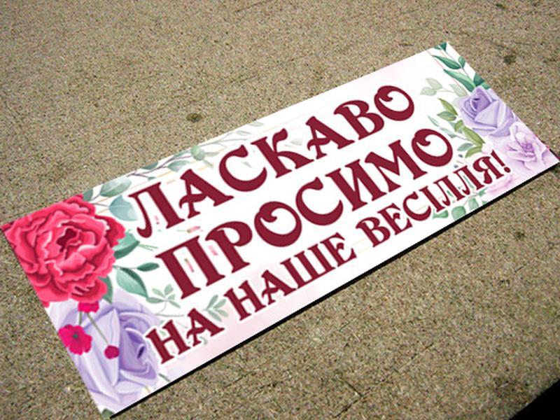 Табличка весільна на браму "Ласкаво просимо", розмір 90 см х 30 см, виготовлена з ПВХ, ламінована. Ціна 400 грн.