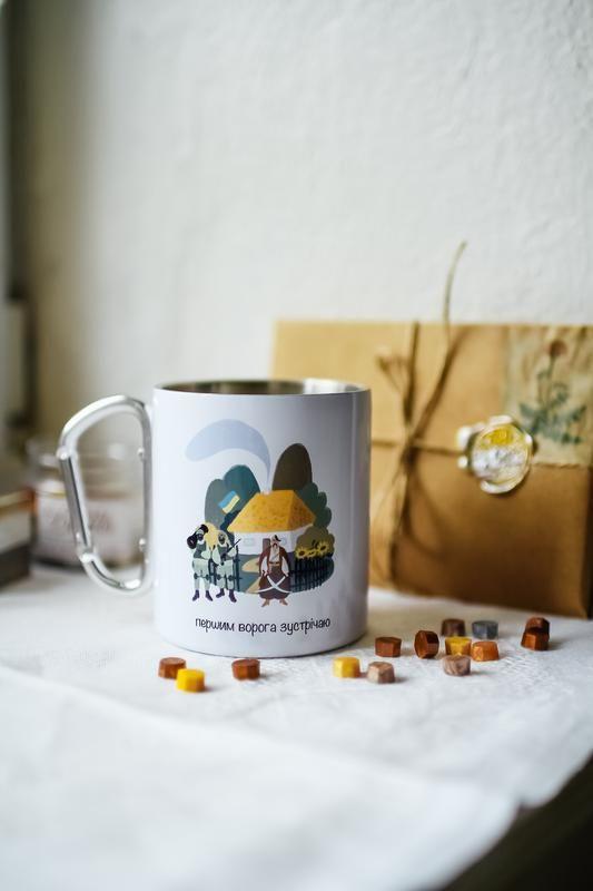 Металева чашка з ручкою-карабіном та патріотичним дизайном. Стане корисним і приємним подаруночком для захисників та тих хто: - любить подорожувати, ходити в походи, на пікніки - часто буває в дорозі - багато часу проводить на природі: у лісі, в полі чи на дачі - захоплюється риболовлею 🌿Об'єм - 300 мл 🌿Ручка-карабін, можна прикріпити до рюкзака, наприклад 🌿Матеріал - метал, корпус чашки - двостінковий 🌿Ручка та зовнішня поверхня чашки майже не нагрівається 🌿Безкоштовне подарункове пакування ❌Не можна ставити на відрите вогнище чи газовий туристичний пальник
