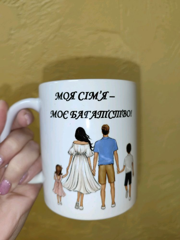 Тип посуду: Чашки Матеріал: Кераміка Чашечка Сімейна є у наявності. Також можу зробити і індивідуальні замовлення. Тут може бути фото Вашої сім'ї чи родини, окремо батьків чи маленької дитини. Звертайтеся, допоможу заробити індивідуальний подарунок.