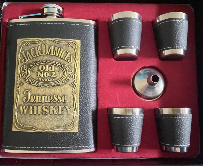 Кілька примірників у наявності Набір: фляга + 4 стопки + лійка. Об'єм фляги: 270 мл Продається гуртом і в роздріб із доставкою по Україні Країна виробник: Китай Призначення фляги: Для алкогольних напоїв Матеріал: Нержавіюча сталь Об`єм: 0.27 л