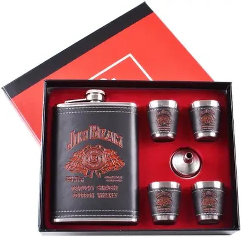 Подарунковий набір 6в1 з флягою 256мл, чарками, лійкою, "jim b...
