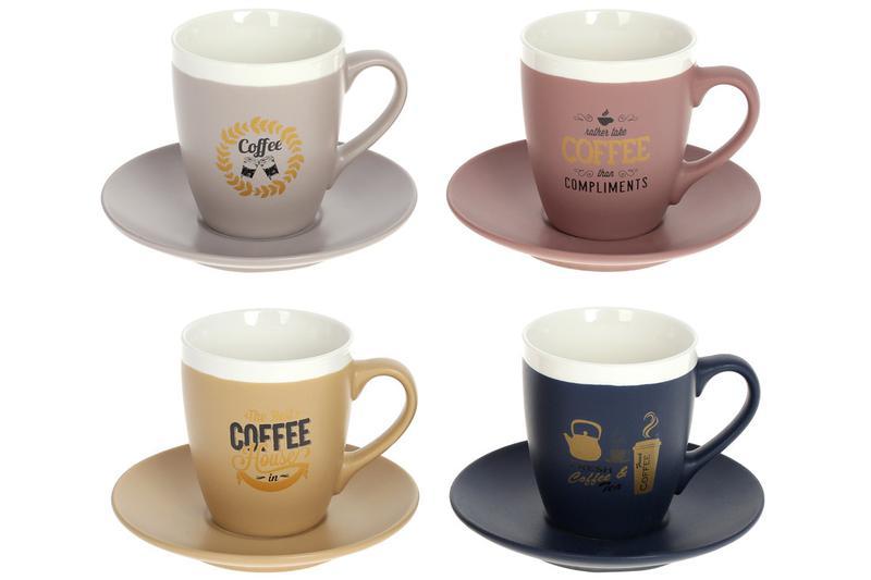 Кілька примірників у наявності Кавовий набір порцеляновий: 4 чашки 240 мл + 4 блюдця Продається гуртом та в роздріб з доставкою по Україні Тип сервізу: Кавовий Кількість персон: 4 Матеріал: Порцеляна Колір: Різні кольори Підходить для миття в посудомийній машині: Так Подарункова упаковка: Так Країна виробник: Україна Чашка кавова: 4 шт. Блюдце кавове: 4 шт. Об'єм кавової чашки: 240.0 мл