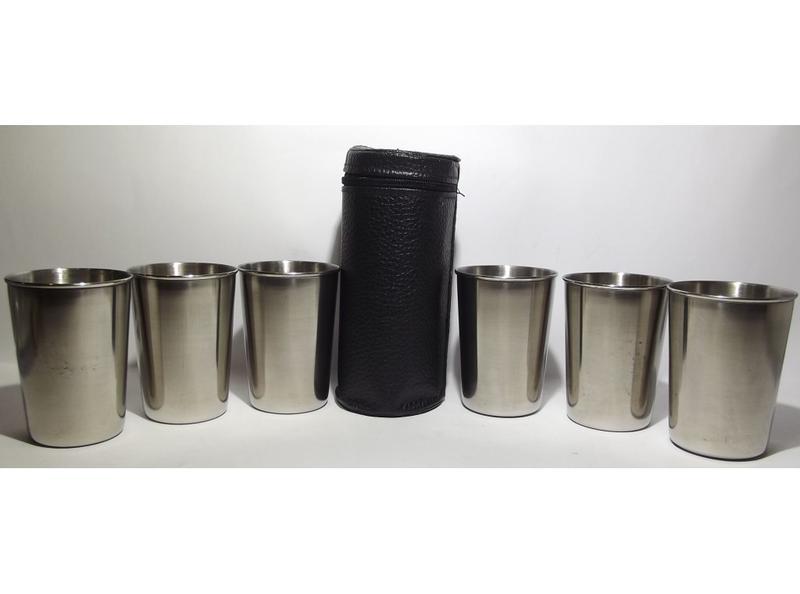 Кілька примірників у наявності Чарки 200 мл у чохлі, набір 6 шт. Продається гуртом та в роздріб з доставкою по Україні Тип ємності: Стопка Матеріал: Нержавіюча сталь Країна виробник: Китай