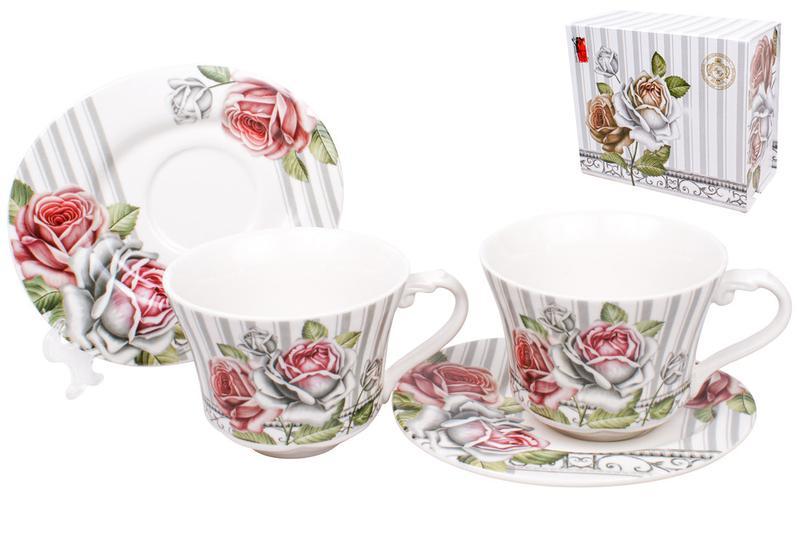 Порцеляновий чайний набір 4 предмети: 2 чашки 220мл + 2 блюдця
