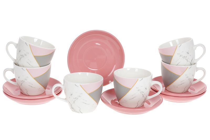 Кілька примірників у наявності Кавовий набір порцеляновий: 6 чашок 240 мл та 6 блюдець, колір - рожевий з білим Продається гуртом та в роздріб з доставкою по Україні Тип сервізу: Кавовий Кількість персон: 6 Кількість предметів: 12 Матеріал: Порцеляна Колір: Різні кольори Підходить для миття в посудомийній машині: Так Подарункова упаковка: Так Країна виробник: Україна Чашка кавова: 6 шт. Блюдце кавове: 6 шт. Об'єм кавової чашки: 240.0 мл
