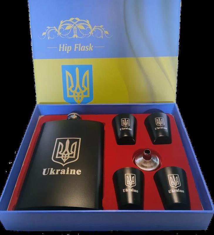 Подарунковий набір 6в1 з флягою 265мл, чарками, лійкою "ukraine"