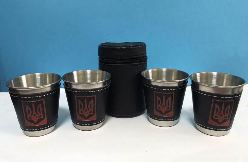 Кілька примірників у наявності Чарки 100 мл у чохлі, набір 4 шт. Продається гуртом та в роздріб з доставкою по Україні Країна виробник: Китай Тип ємності: Стопка Матеріал: Нержавіюча сталь Об`єм: 100.0 мл Кількість в наборі: 4 шт.