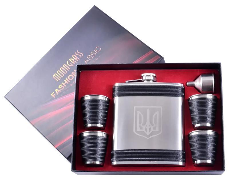 Подарунковий набір з флягою для чоловіків україна (шкіра), 530мл