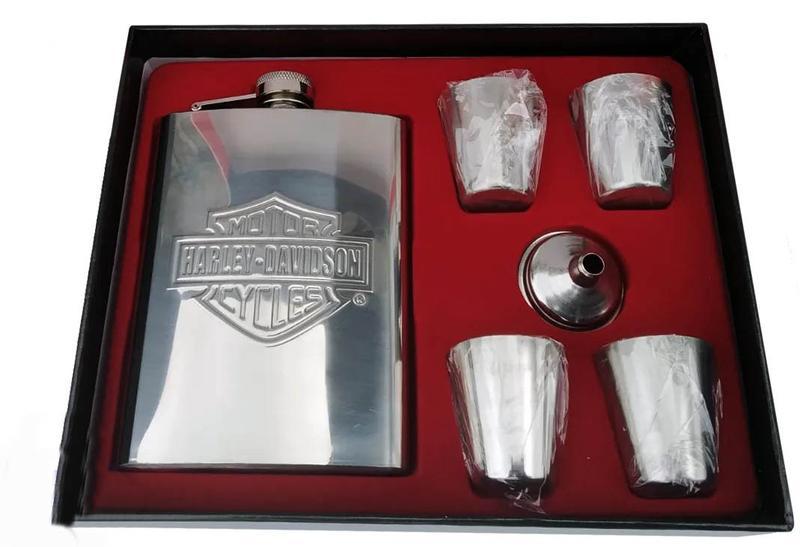 Кілька примірників у наявності Подарунковий набір 6в1 - - Фляга (Обсяг: 9 oz / 265 мл) - - 4 чарки (Об'єм: 30 мл) - - Лійка Продається гуртом та в роздріб з доставкою по Україні Країна виробник: Китай Призначення фляги: Для алкогольних напоїв Форма: Прямокутна Стан: Новий