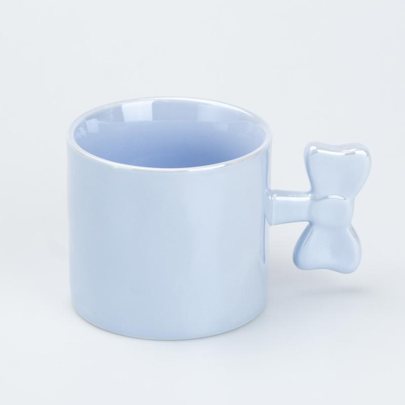 Чашка с ручкой в виде бантика керамическая 350 мл голубая