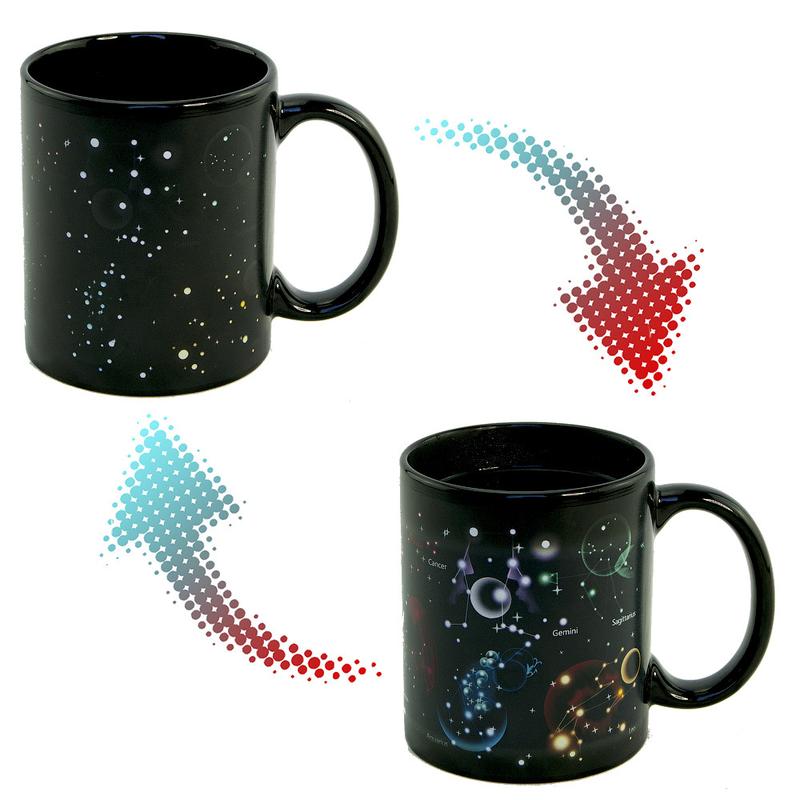 Чашка хамелеон Звездное небо 12 Созвездий с потрясающим спецэффектом. Стоит залить горячий напиток, как на звездном небе появляются множество созвездий. Объем керамической чашки 350 мл, благодаря чему, Вы можете, целиком и полностью насладится любимым напитком. Такую оригинальную чашку можно подарить другу или подруге, которые увлекаются астрономией. Так же такая чашка станет забавным подарком для ребенка. Широкий выбор чашек и кружек с забавным дизайном для любого повода Вы можете купить в интернет магазине Карнавал Приколов.