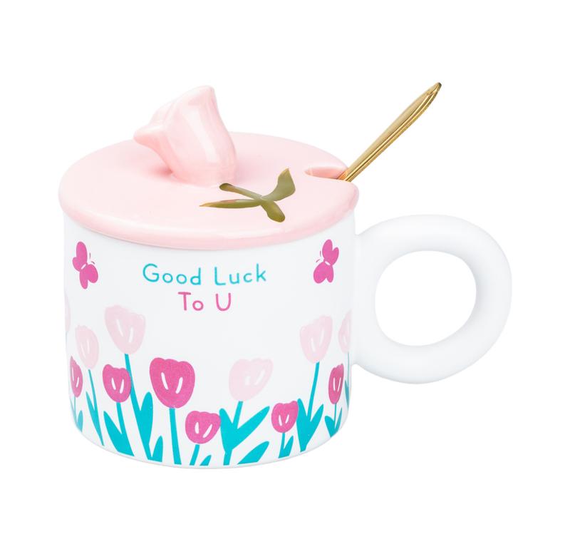 Чашка керамическая tulips 300 мл с крышкой и ложкой