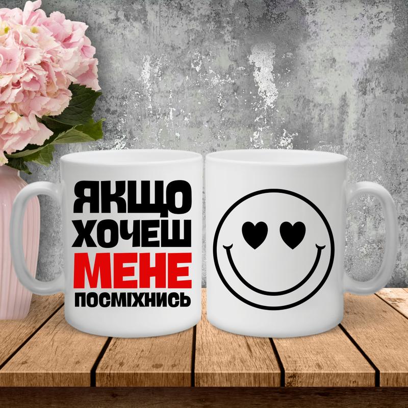 Парные чашки с принтом - если хочешь меня, улыбнитесь!