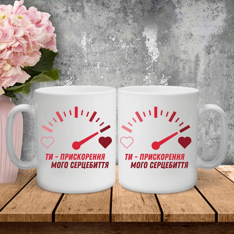 Парные чашки с принтом - ты - ускорение мою сердцебиение!