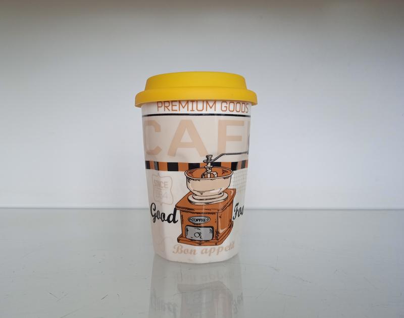 Чашка стакан для кофе и чая Есть силиконовая крышка с поильником Материал стакана: керамика Материал крышки: силикон Объем: 300 мл