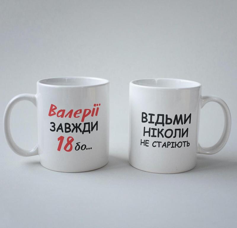 Кружка с принтом "валерии всегда 18" 330 мл белая pro_199