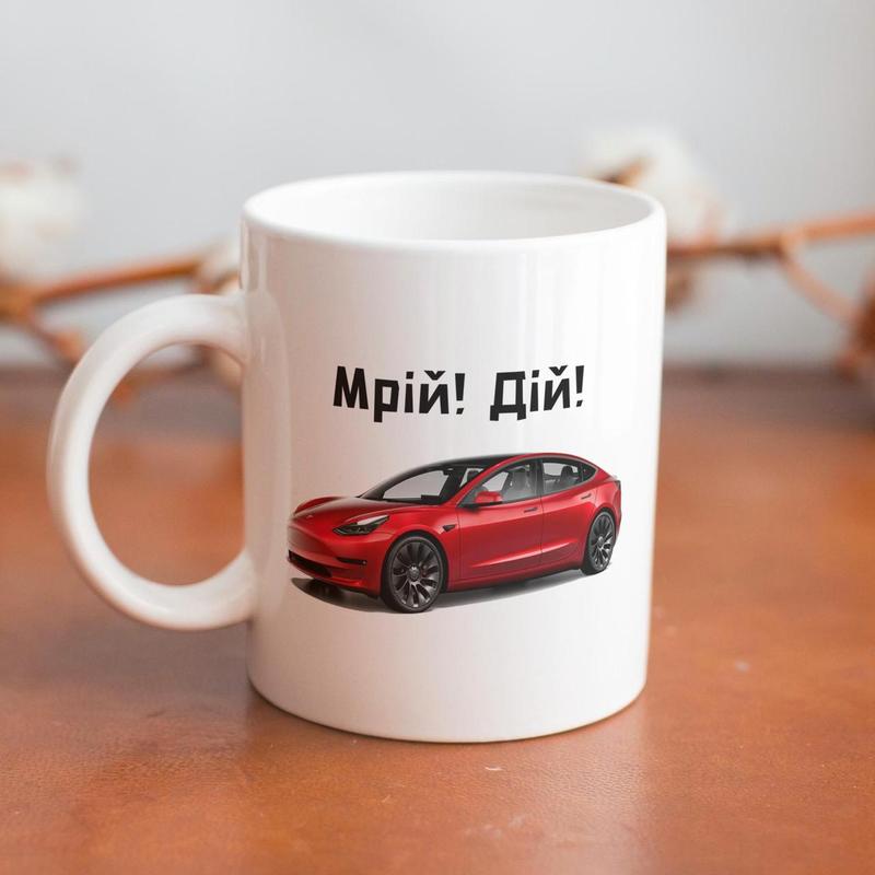 Кружка с принтом "мрій дій tesla 3" 330 мл белая pro_199