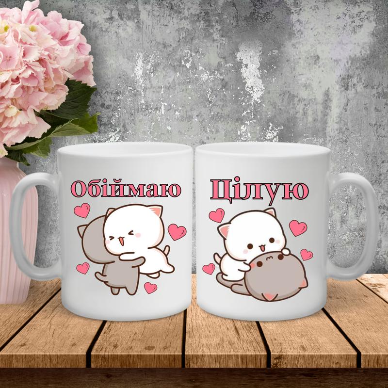 Парные чашки с принтом - обнимаю/целую!