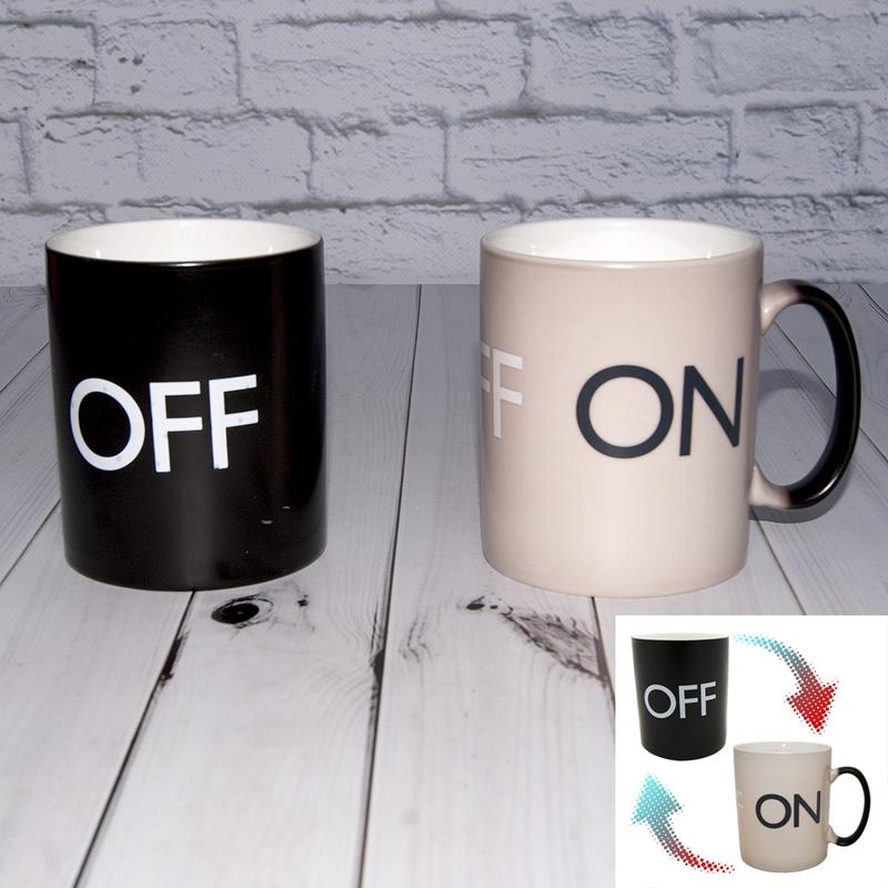 Вы не знаете, что подарить парню, перебираете в голове варианты, но так ни на чем не останавливаетесь? А нужно подобрать подарок практичный и оригинальный? Или Ваша главная фишка - это креативные подарки, которые Ваши друзья еще долго вспоминают. Тогда необычным подарком станет чашка OFF ON, изменяющая расцветку и написанные на ней слова под действием горячего напитка. Когда в кружку наливается чай или капучино с температурой 70 градусов и выше, черный фон поменяется на белоснежный, а OFF переключится на ON. Вы так неохотно встаете утром из своей тепленькой постели чтобы идти на работу? Тогда чашка OFF-ON подбодрит, и поможет включиться. Купите чашку в интернет-магазине Карнавал Приколов, и она станет подарком для каждого, кому необходимо, но сложно вставать по утрам. Данный товар возврату и обмену не подлежит.